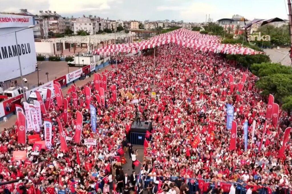 Ekrem Başkan 74 gündür bir zindanda tutuluyor. Ama biliyoruz ki her karanlığın bir aydınlığı vardır. Ekrem Başkan bizim çoban yıldızımızdır. Erdoğan sen görüyor musun Kepez Meydanı’nı. Sen rakiplerini hapse atarak galip geleceğini sandın. Bu millet asırlık kazanımlarına sahip çıkıyor. Sen sokaklardan, meydanlardan korkarsın. Bu milletin iradesine cunta yapan kişi sensin. Bu meydanda, sosyalist demokratlar, muhafazakar demokratlar burada, Kürt demokratlar burada.