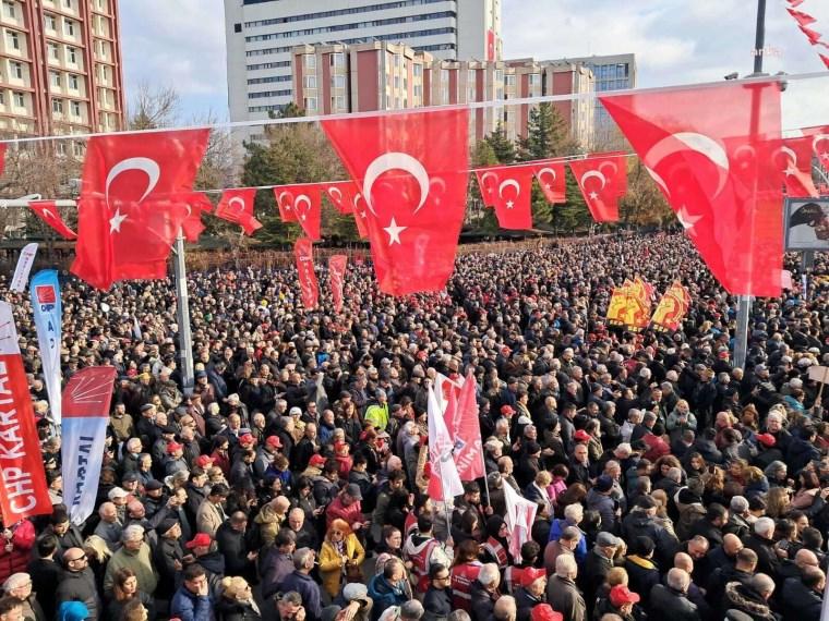 Gerçek Meclis burasıdır, meydanlar: CHP’nin Genel Başkanı olarak, TBMM’yi 1920’de kurmuş partinin genel başkanı olarak hiç şüphe yok ki Meclis’i çok önemsiyorum, tüm milletvekillerimiz, partimiz çok önemsiyor. Emeklilerin, emekçilerin, esnafın, çiftçilerin sesini o Meclis’e taşıyoruz ama gördük ki o Meclis’te söylenenlere rağmen birileri bildiğini okumaya devam ediyor. O Meclis ki gücünü halktan alır, o zaman yetkinin gerçek sahibine gitmenin, millete gitmenin zamanıdır. Biz, TBMM’de asgari ücret ilanından sonraki oturuma katılmadık. Dedik ki, ‘Madem beklentide yanıt yok, o zaman biz de burada yokuz.’ Bugün burası gerçek bir Meclis’tir, güçlü demokrasilerde millet, vekaletini siyasetçilere verip 5 yıl boyunca bir kenarı çekilmez. Kendisiyle ilgili her konuda söz sahibi olmak ister, siyasileri takip eder, gerekirse yetkiyi geri alır. Eğer iktidar, milyonlarca insanın sesini duymamakta ısrar ediyorsa, oy alırken; ‘Yılda 4 kere ayarlama yaparız’ dediği asgari ücretliyi bir yıl boyunca bir kuruş vermeden yoksulluğa mahkum ediyorsa dünyanın en fedakar insanları olan emeklileri sefalete mahkum ediyor, esnafı duymuyor, çiftçinin sorunlarını görmüyorsa o zaman gerçek meclis burasıdır, meydanlardır.