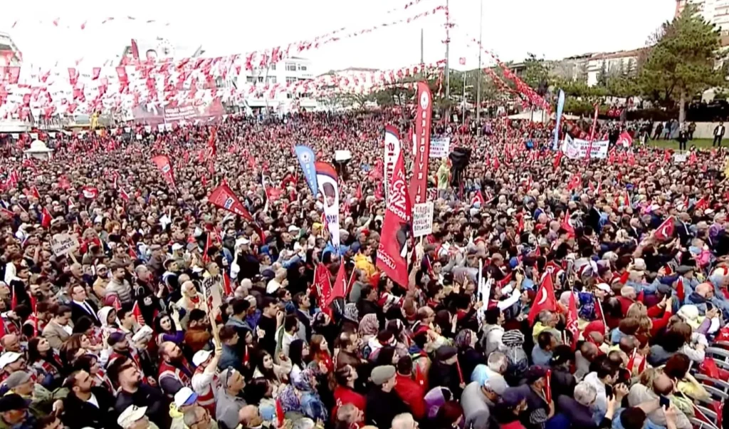 Bu iktidarın bu meydanda görmesi gereken çok şey var. Biz bu toplantıyı Samsun’dan sonra İzmir, Mersin ya da Antalya’da, partinin kalelerinden birinde, Trabzon’da Ekrem Başkan’ın memleketinde yapabilirdik. Ama madem ki milli irade ve sandık mühimdir, bu sandığa en çok sahip çıkan, seçimlerde yüzde 86 katılım oranıyla rekorlar kıran ve bugün zulmedeni, sandığa darbe yapanı, ülkenin başına bir cunta getirerek o cuntanın başına geçeni, bugün bu Yozgat son cumhurbaşkanlığı seçimlerinde yüzde 75 oyla desteklemişken, bugün bu yapılana itiraz ediyorsa, ses yükseltiyorsa, o gün Erdoğan’ın topladığının iki katı kalabalık ile ‘Yaptığın doğru değil’ diyorsa, doğru meydan bu meydandır Erdoğan.
