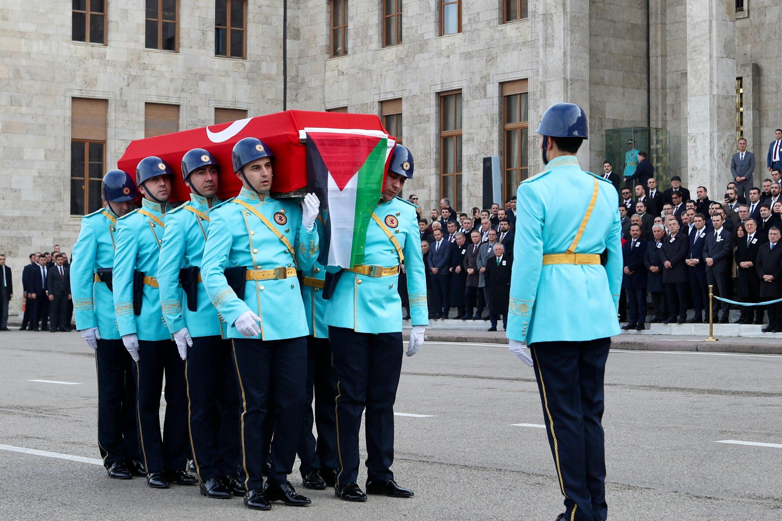 Hasan Bitmez için Meclis’te cenaze töreni düzenlendi. Törene farklı partilerden çok sayıda vekil katılırken Bitmez’in tabutuna hem Türk bayrağı hem de Filistin bayrağı asıldı.