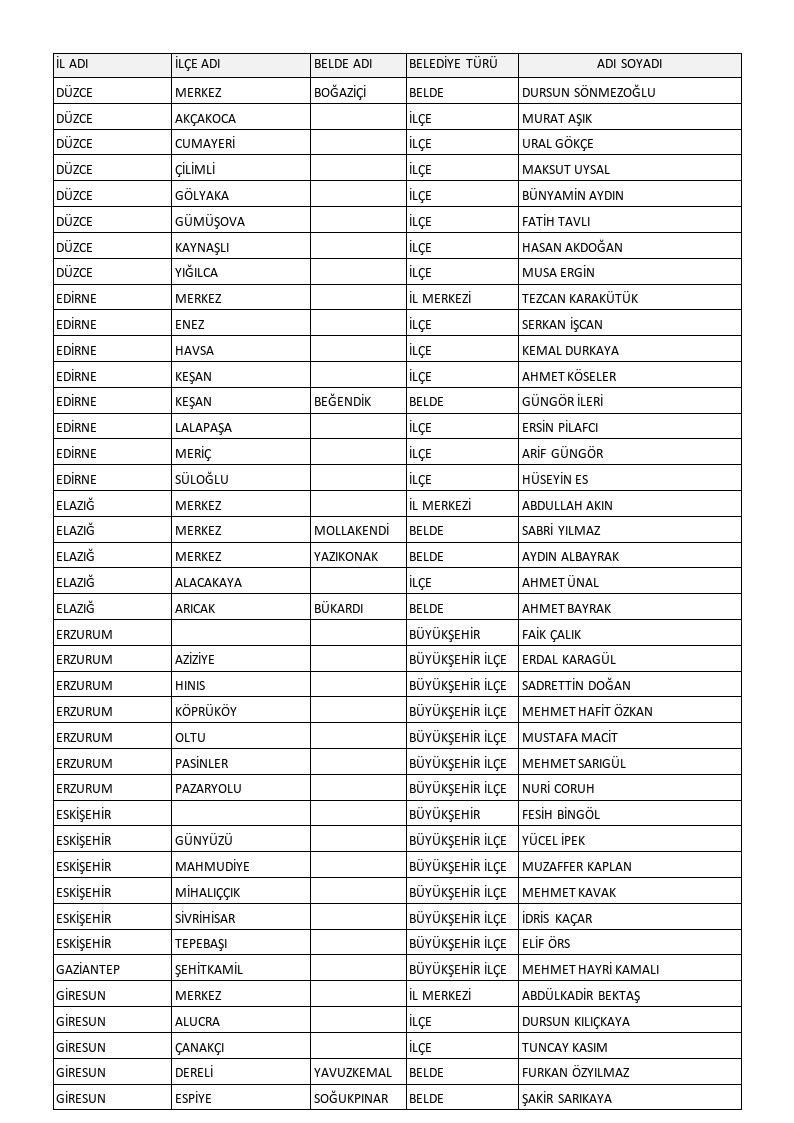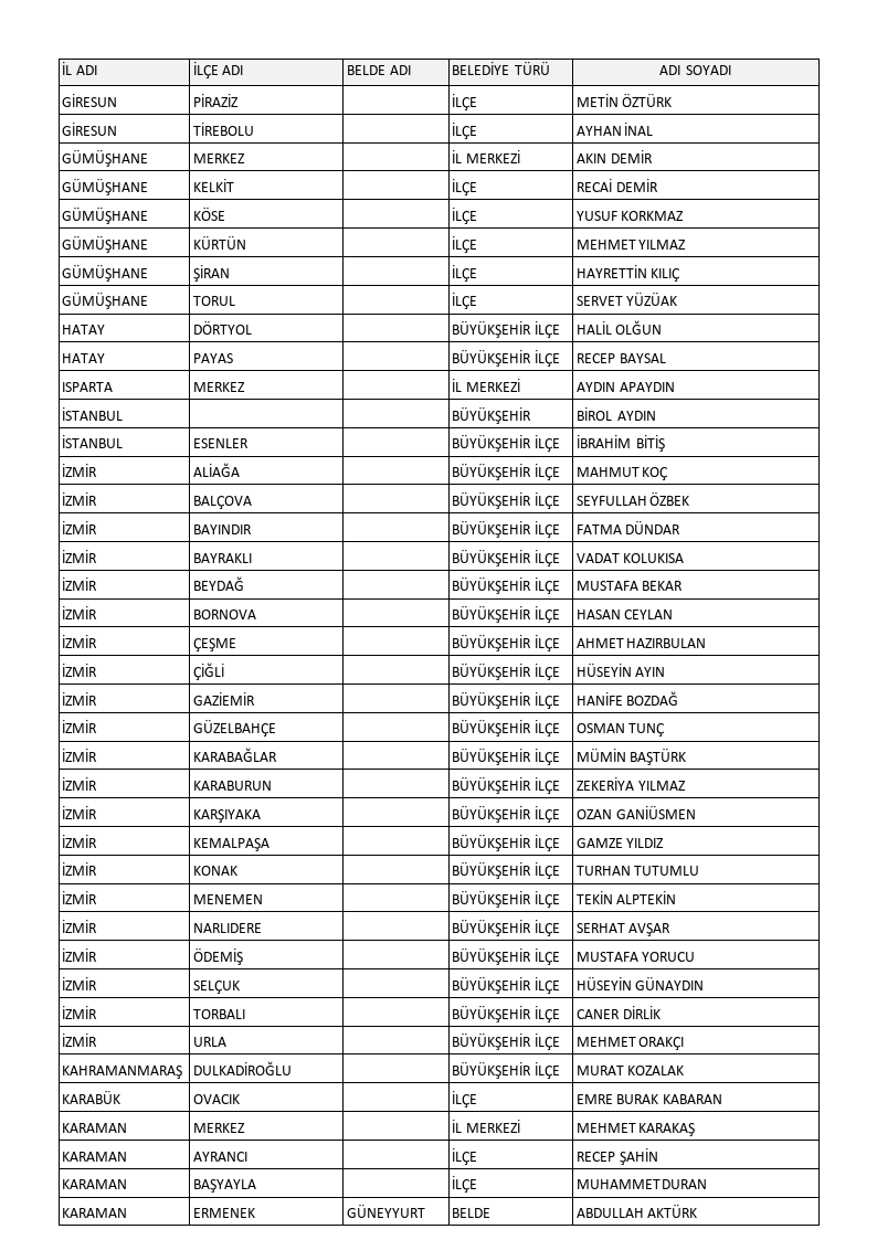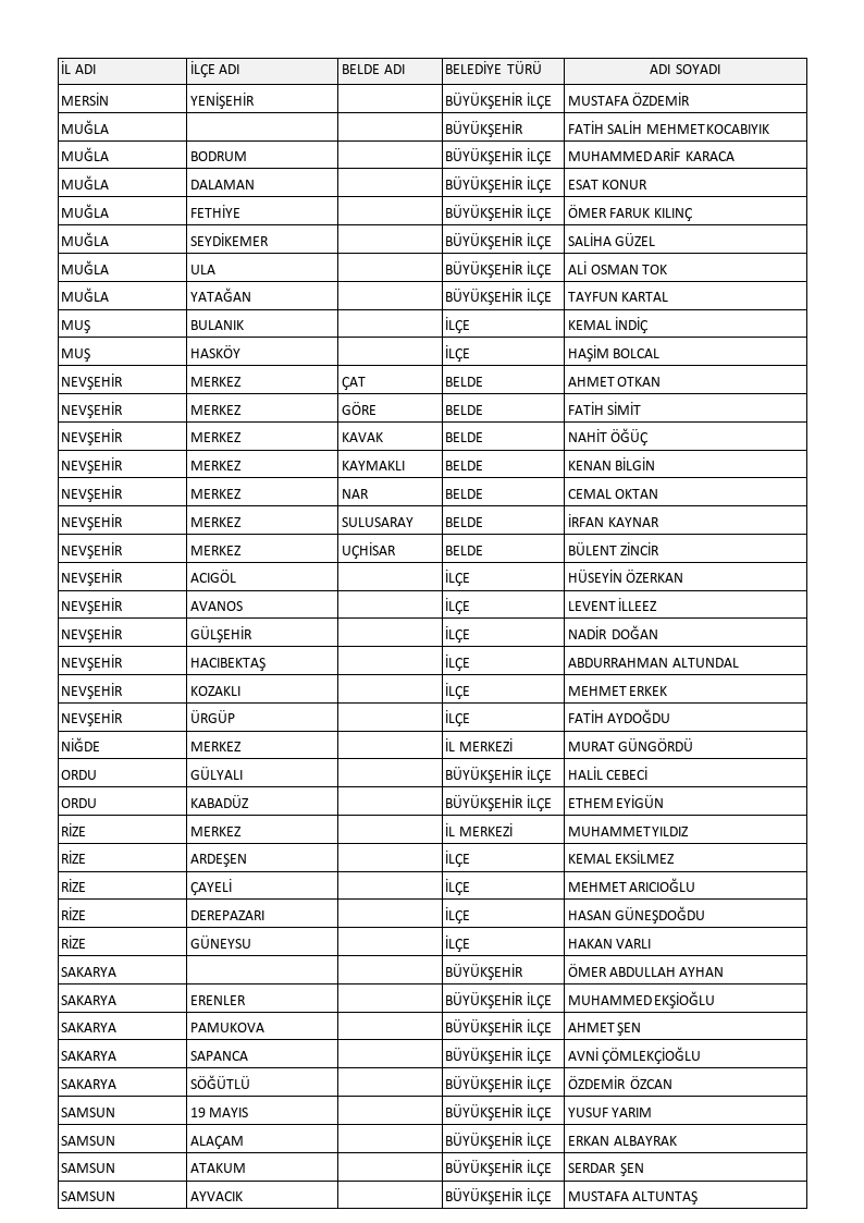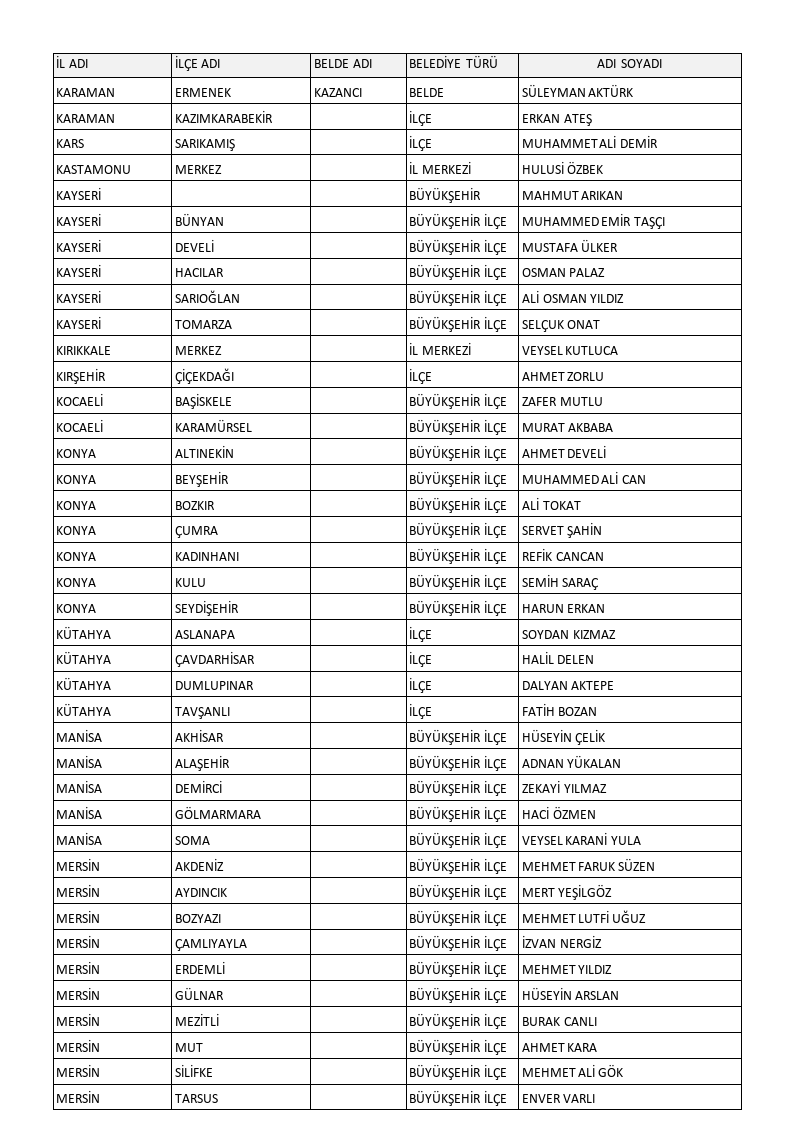 Karamollaoğlu, toplantının ardından adaylarını açıkladı. Açıklanan adayların tamamı şöyle: