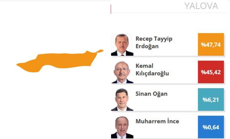 Yalova’daki Cumhurbaşkanlığı seçim sonuçları.