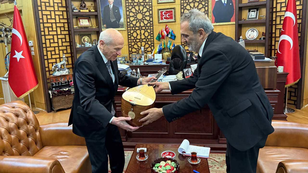 Türkücü Yavuz Bingöl, MHP Genel Başkanı Devlet Bahçeli’yi makamında ziyaret ederek bağlamasını hediye etti. Hibe ettiği arazi üzerine inşa edilen Horasan Erenleri Dergahı Cemevi için Bahçeli’ye teşekkür eden Yavuz Bingöl ayrıca Bahçeli’ye “Çeke Çeke” deyişini çaldı.