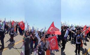 Türk bayraklarıyla alana gelenlerden birisi 25 yaşındaki Emral’dı. Emral, alana Türk bayrağıyla gelmesini “Ben bayrağımı da, partimi de seviyorum. Bu ikisinin yan yan olması bir sorun yaratmıyor” sözleriyle anlattı.