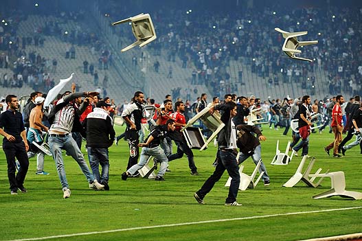 Olimpiyat Stadı’ndaki maç Galatasaray 2-1 öndeyken seyircilerin sahaya inmesiyle yarım kaldı.