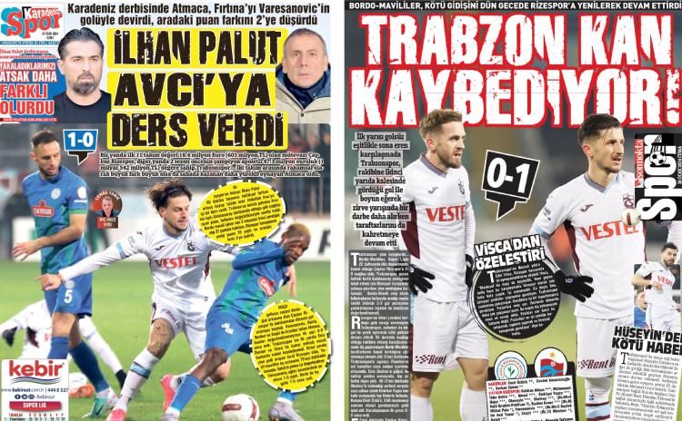 Trabzon’da yayın yerel gazeteler de Trabzonspor’un hem kötü gidişatını hem de Rizespor deplasmanında alınan mağlubiyeti farklı başlıklarla okuyucularına duyurdu. Yerel gazetelerin manşetleri şöyle…
