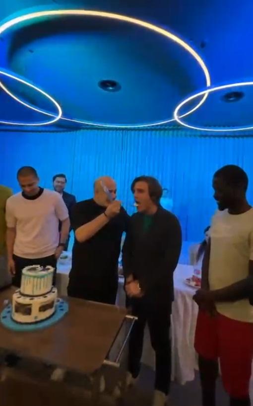 Sancak, Vincenzo Montella’ya kesilen pastayı elleriyle yedirdi.