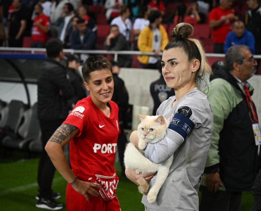 Kadın Futbol Süper Ligi finalinde Ankara Büyükşehir Belediyesi Fomget, Fenerbahçe'yi uzatmada bulduğu gollerle 4-2 devirdi. Ankara ekibinin kaptanı Selda Akgöz, kedisiyle çıktığı törende kupayı Fenerbahçelilerin alkışlarıyla kaldırdı.