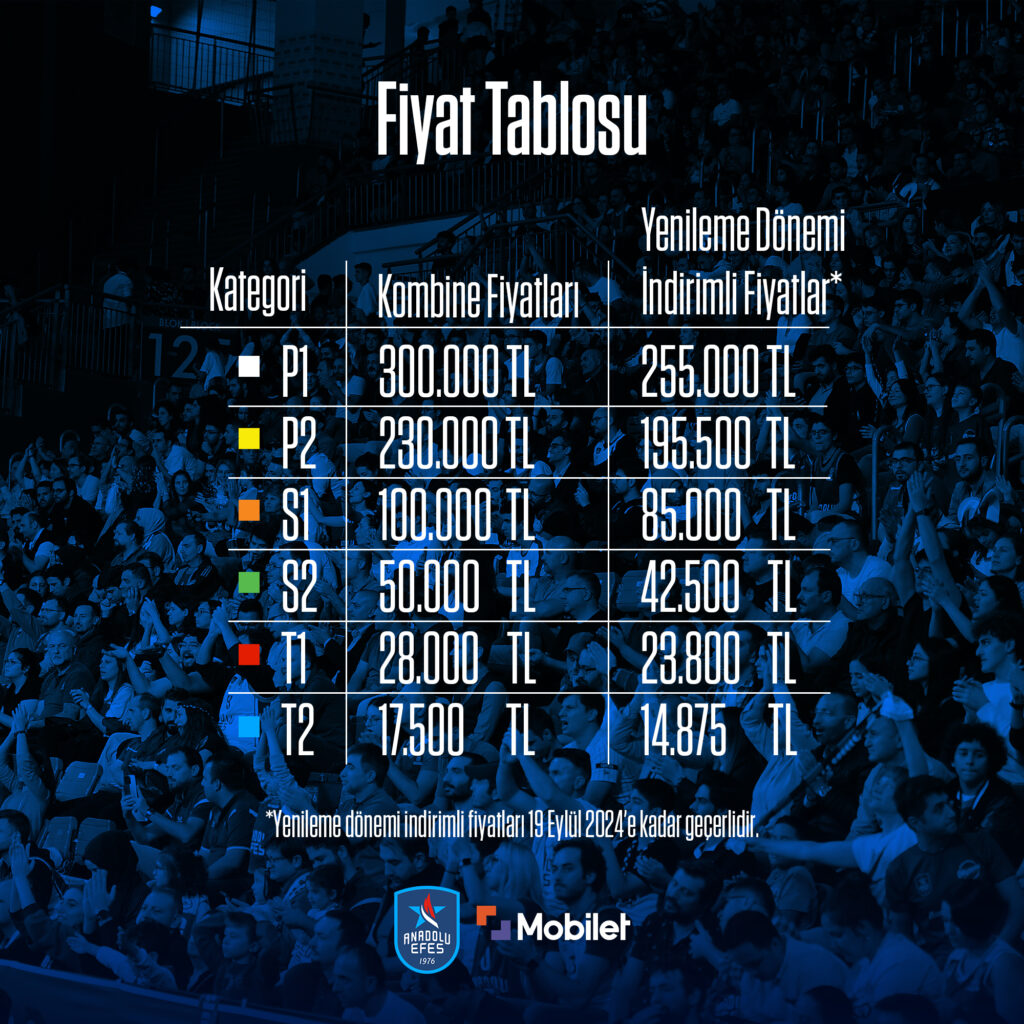 Anadolu Efes’te yeni sezon kombine fiyatları bu şekilde.