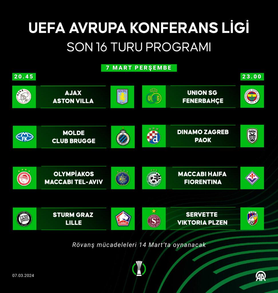 UEFA Avrupa Konferans Ligi son 16 turu programı.