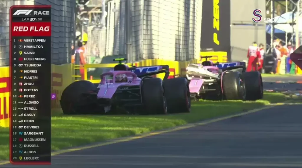 Avustralya GP’nin son 2 turuna girilirken, ortalık birbirine girdi. Carlos Sainz ile Fernando Alonso’nun teması sonrası Alonso spin atarken Pierre Gasly ve Esteban Ocon da birbirine çarptı. Yaşanan kazalar sonrası yeniden kırmızı bayrak çıktı.
