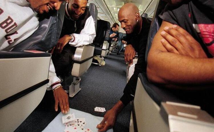 Michael Jordan ve Chicago Bulls takımı oyuncuları uçakta kart oynarken…