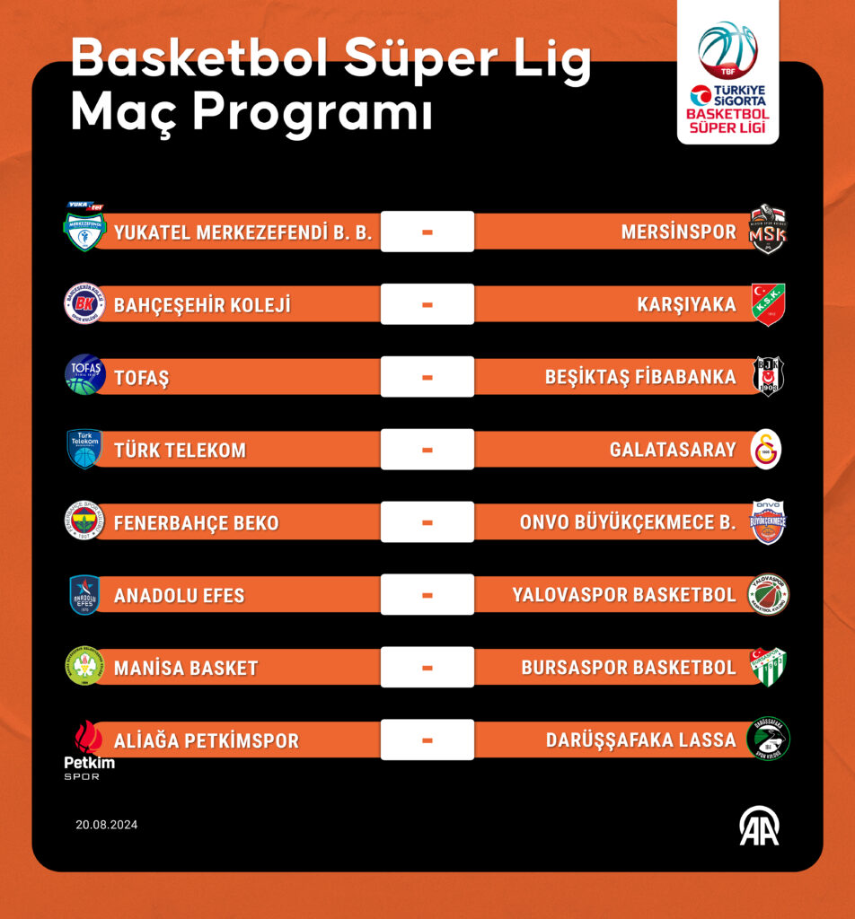 BSL'de yeni sezonun fikstürü çekildi. Basketbol Süper Ligi’nde 2024-2025 sezonunun fikstür çekimi Basketbol Gelişim Merkezi’nde gerçekleştirildi. Fikstür çekim törenine Türkiye Basketbol Federasyonu (TBF) Başkanı Hidayet Türkoğlu ve yönetim kurulu üyeleri ile kulüp temsilcileri katıldı. 16 takımın mücadele edeceği Basketbol Süper Ligi’nde yeni sezon, 4 Ekim’de başlayacak. 19 Mayıs’ta tamamlanacak normal sezonda ilk altıda yer alan takımlar doğrudan play-off oynama hakkı elde edecek.