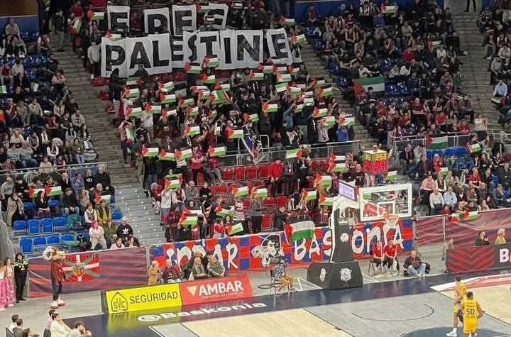 Spanish Baskonia fans support Palestine at the match against Israeli Maccabi🇵🇸 pic.twitter.com/VQitENenSZ