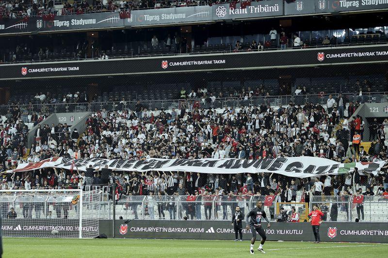Beşiktaş taraftarı Gazze lehine pankart açtı.