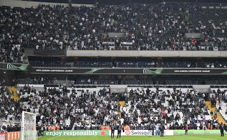 Beşiktaş seyircisi maç bittikten sonra uzun süre tribünde kaldı ve protestosunu sürdürdü.