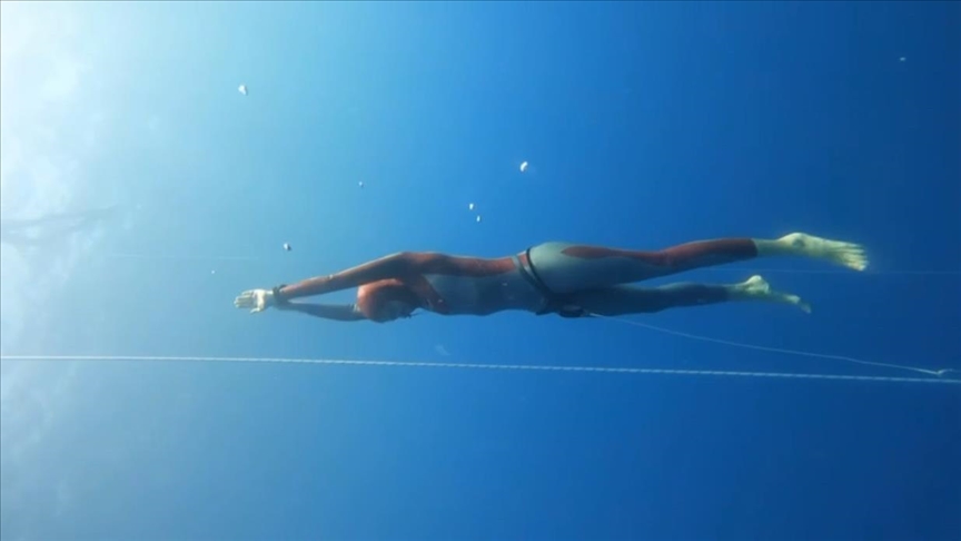 Kaş ilçesindeki şampiyonada, paletsiz sabit ağırlık (CNF) kategorisinde 38 metreye dalış yapan Erken, Türkiye rekoru kırdı.