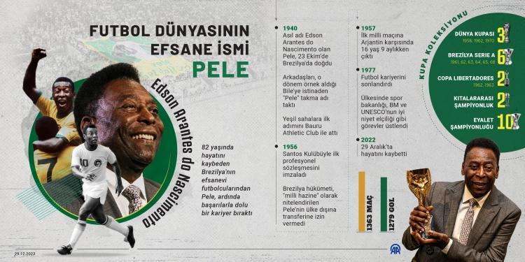 ‘Siyah inci’, ‘futbolun kralı’, ‘kral Pele” gibi lakaplar takılan efsane futbolcu, 1000 gol barajını aşan oyunculardan biri oldu. Pele, 1363 maçlık kariyerine 1279 gol sığdırarak Guinness Rekorlar Kitabı’na girdi. Birçok sporsevere göre dünyanın en iyi futbolcusu Pele, Brezilya Milli Takımı ile kariyerine sığdırdığı üç Dünya Kupası, kulüp ve bireysel başarılarıyla futbol dünyasında iz bırakan isimlerden biri olarak hayata gözlerini yumdu.