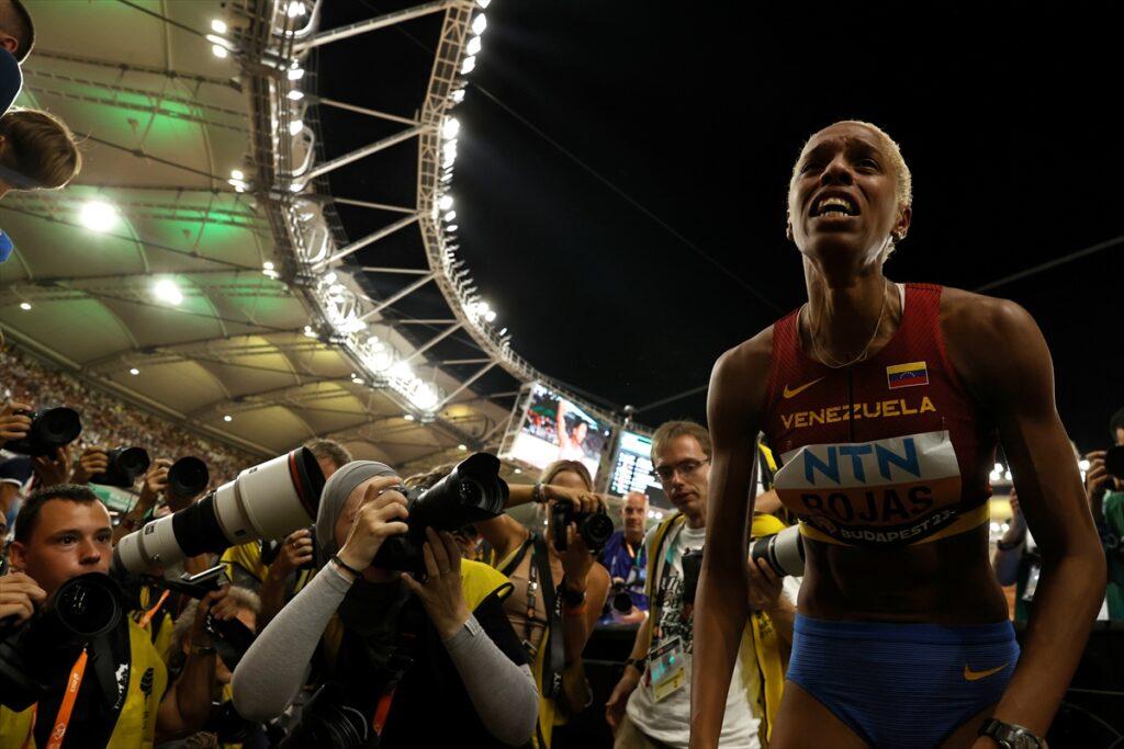 Venezuelalı Yulimar Rojas altıncı atlayışıyla kürsünün en üst basamağına çıktı.
