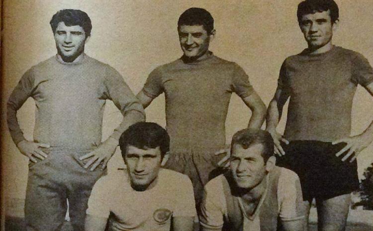 Sene 1969.. Göztepe’de beş Mehmet. Soldan sağa Üst sıra: Papi Mehmet, Tireli Mehmet, Fuji Mehmet Alt sıra: Asker Mehmet, Sarı Mehmet.