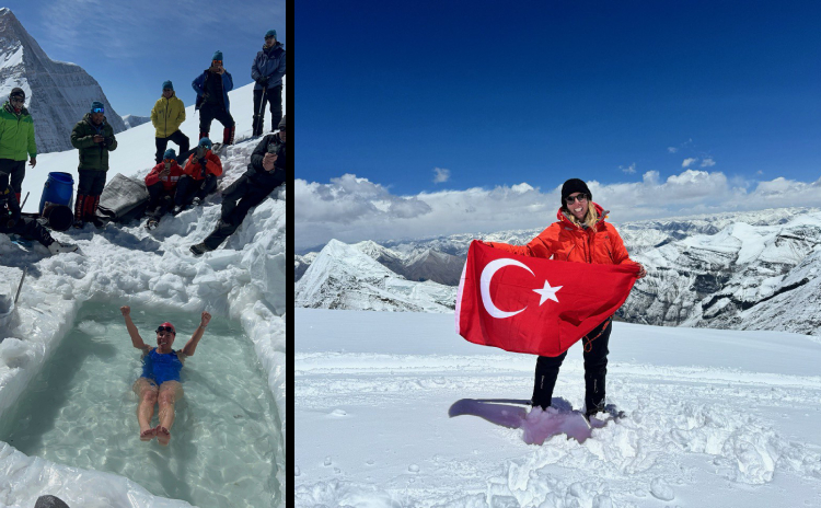 Deniz Kayadelen Putha Hinchulli Dağı’nın 6400 metre yüksekliğinde üç derecelik suda beş dakika yüzdü.