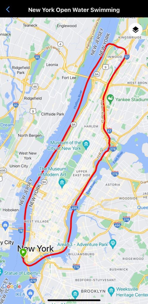 Deniz Kayadelen’in önünde ‘üçlü taç’ı tamamlamak için bir tek engel kalmıştı: Hudson Nehri. 21 Ağustos’ta suya girdi. Amerika Birleşik Devletleri’nin New York eyaletindeki Hudson Nehri onun için ayrı bir zorluk barındıyordu. Su pisti, dip gözükmüyordu. Yüzerken su yutmamaya çalıştı. 7 saat 58 dakika ile 48 kilometreyi tamamlayarak Hudson Nehri parkurunda Türkiye kadınlar rekorunu kırdı. Kayadelen böylece Manş Denizi ve Catalina Kanalı’nın ardından Manhattan Adasını da yüzerek ‘triple crown’ (üçlü taç) denen üç ayaklı yüzüşü tamamladı. Yaşadıklarını da şöyle anlattı: “Yüzerken ilk saatler negatif düşünceler çok yoğun oluyor. 6-7 saat sonra zamanı unutuyorsunuz. Tamamen doğayla bütünleşiyorsunuz. 10. saatte artık pes etme duyguları başlıyor. Yüzüş için çok duygusal, inişli çıkışlı bir serüven diyebiliriz. Birincisi hedefe kitlenmek, ikincisi destek ekibi çok önemli. Pes ediyorum yapamıyorum dediğiniz an destek ekibinizin sizi motive etmesi, sizinle suya girmesi, size güç ve güven vermesi çok önemli. Pes ediyorum yapamıyorum dediğiniz an daha yüzde 60 enerjiniz var demektir. Buna inanın ve devam edin.”