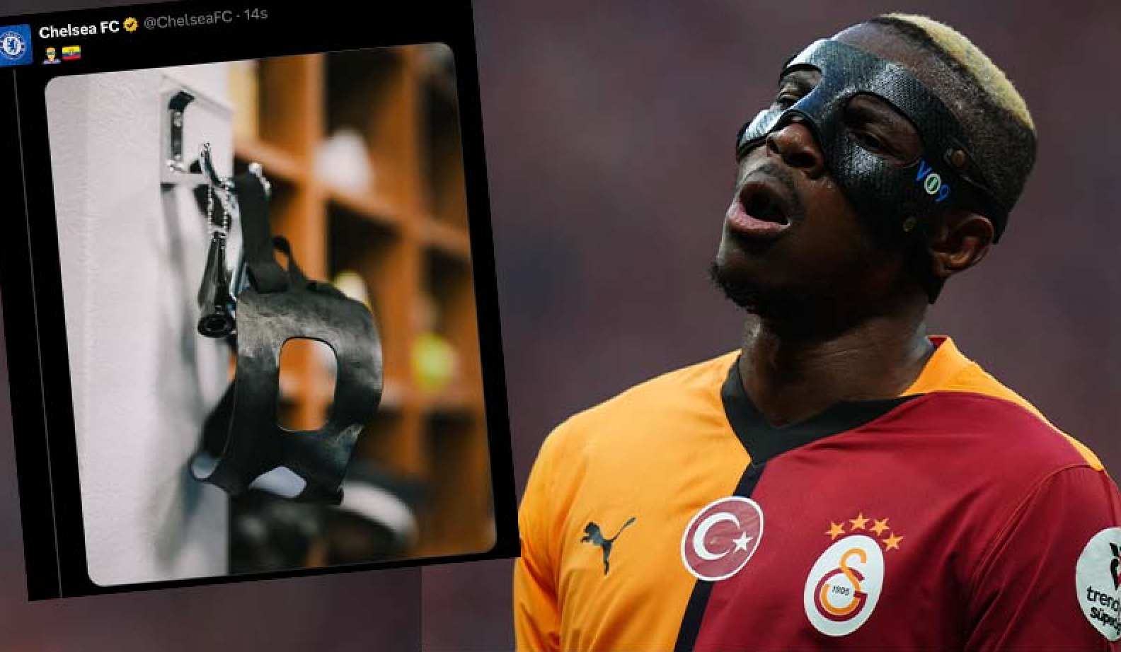 Osimhen için Galatasaray seferberlik ilan ederken Chelsea, Osimhen'in taktığı maskeye çok benzer bir maskenin fotoğrafını Ekvador bayrağı emojisiyle paylaştı. Ama kastedilen Osimhen değil Caiceo imiş.