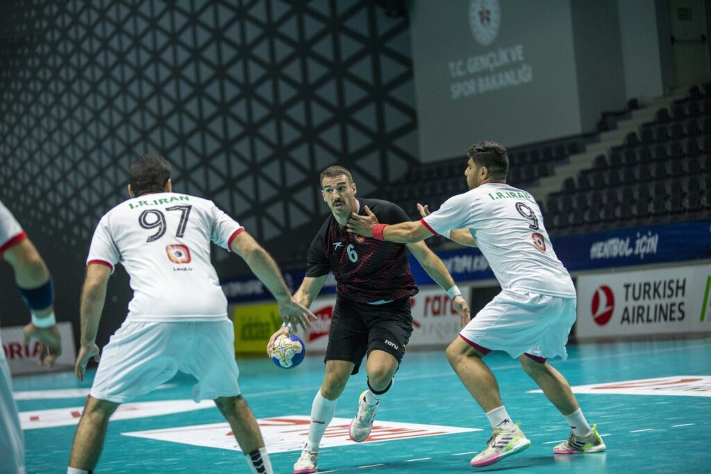 Ankara’da hazırlık kampını sürdüren A Milli Erkek Hentbol Takımı, İran Milli Takımı ile özel maçta karşı karşıya geldi. THF Prof. Dr. Yaşar Sevim Hentbol Salonu’nda yapılan maçın ilk yarısı 13-14 İran Milli Takımı’nın üstünlüğü ile tamamlandı. Aynı salonda oynanan ilk hazırlık maçını da milli takım 28-26 kazanmıştı. A Milli Erkek Hentbol Takımı, başantrenör Daniel Gordo Rios yönetiminde 16 Haziran 2024 tarihine kadar çalışmalarını Prof. Dr. Yaşar Sevim Hentbol Salonu’nda sürdürecek.