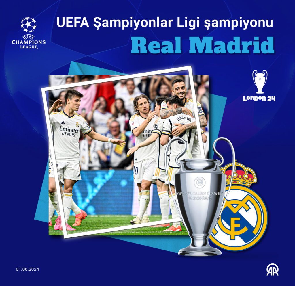 UEFA Şampiyonlar Ligi finalinde Alman ekibi Borussia Dortmund’u 2-0 yenen İspanyol temsilcisi Real Madrid, şampiyon oldu. (Grafik: AA)
