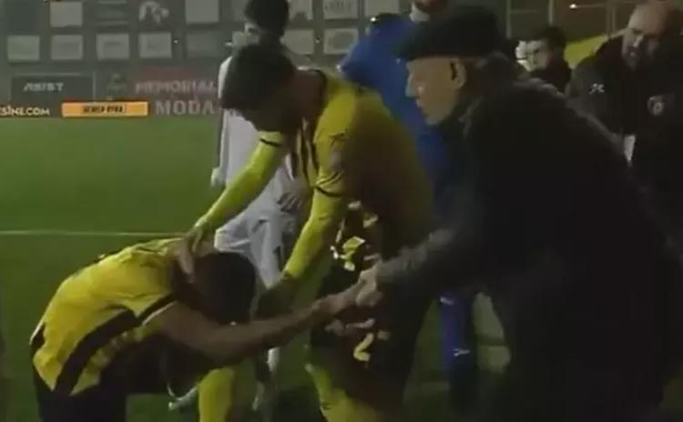 Simon Deli maça devam etmek adına Başkan Sarıalioğlu önünde böyle diz çökmüştü.