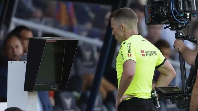 VAR odasından, Fermin’in golüne bakarken, Barcelonalı oyuncunun elle müdahalesi görüldüğü anda VAR hakeminin “MENOS MAL” (şükürler olsun) ifadesini kullandığı görüntülere yansıdı.