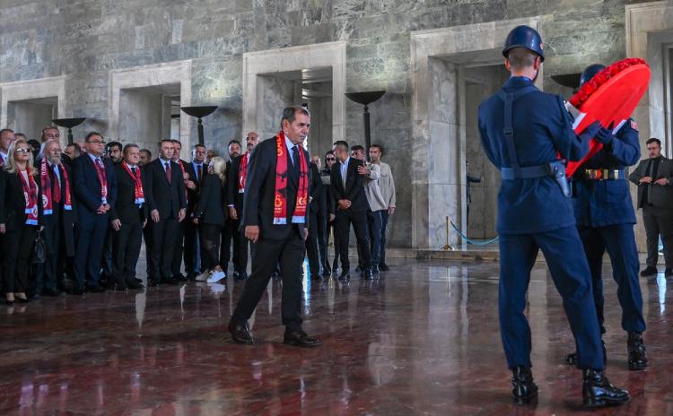Özbek başkanlığındaki sarı-kırmızılı heyet, Atatürk’ün mozolesine çelenk bıraktı ve saygı duruşunda bulundu. Anıtkabir merdivenlerinde hatıra fotoğrafı çektiren heyet, daha sonra Misak-ı Milli Kulesi’ne geçti. Başkan Dursun Özbek, burada Anıtkabir Özel Defteri’ni imzaladı.