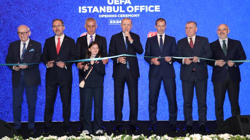 Cumhurbaşkanı ve AKP Genel Başkanı Recep Tayyip Erdoğan, ‘UEFA İstanbul Temsilciliği Açılış Töreni’nde konuştu. Erdoğan, “UEFA, İstanbul temsilciliğinin açılmasıyla bu çalışmaları bir üst seviyeye taşıyoruz. UEFA, Londra ve Brüksel’den sonra İstanbul’da temsilcilik açıyor. UEFA ile daha fazla iletişim kuracak ve birlikte ortak projelere imza atacağız” dedi.