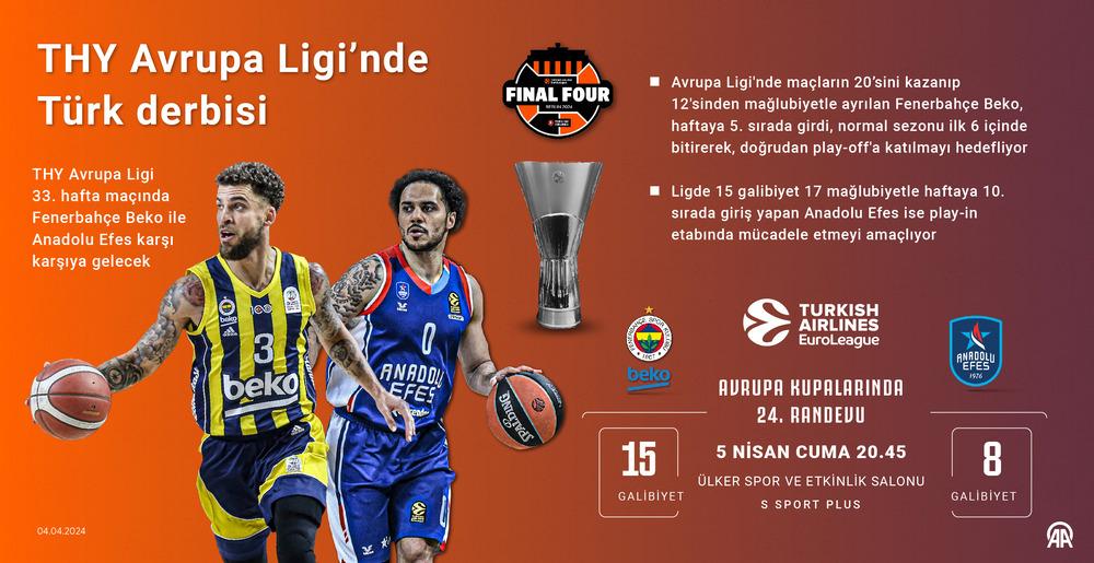EuroLeague'de normal sezonun bitimine iki hafta kala turnuvada Türkiye'yi temsil eden iki takım karşı karşıya gelecek. Fenerbahçe kazanırsa ilk dört sıra için dev bir adım atacak, Efes ise play-in için deplasmanda zafer arayacak.