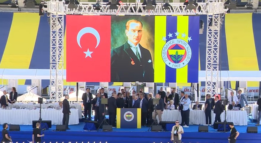 10.05: Fenerbahçe Başkanı Ali Koç, stadyuma geldi. Büyük ilgi gören Ali Koç, alkışlar eşliğinde kürsüye geldi.