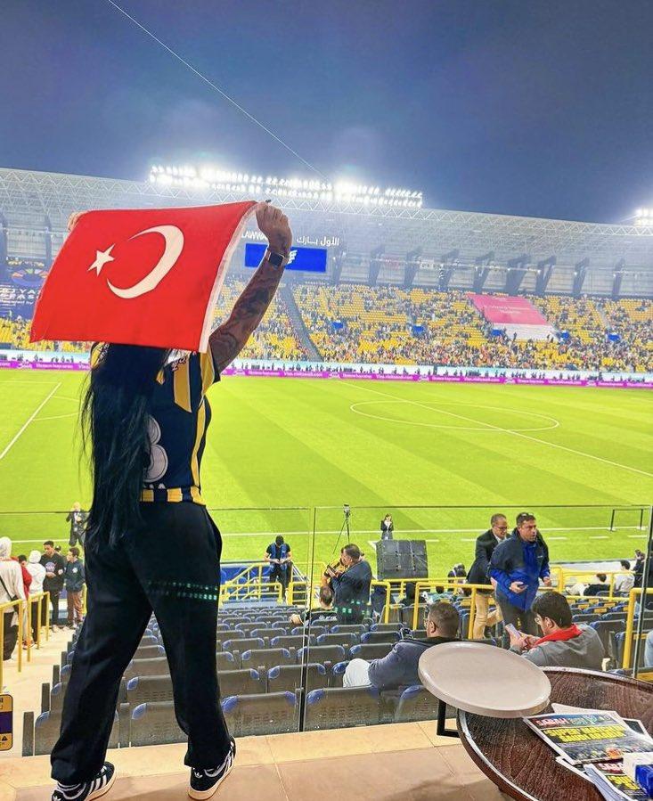 Fenerbahçe’nin futbolcusu Lincoln Henrique’nin eşi Adriana Müller ise “Yurtta sulh, cihanda sulh” notuyla El Awwal Stadyumu içinden Türk bayrağıyla bir fotoğraf paylaştı.
