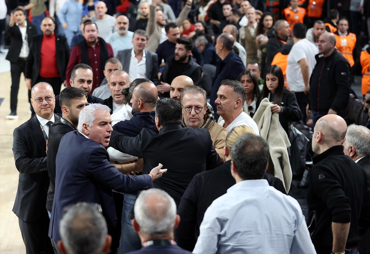 Maçın son çeyreğinde Beşiktaş’ın basketbol şubesinden sorumlu Umut Tahir Güneş ve Galatasaray kaptanı Göksenin Köksal arasında bir tartışma yaşandı. Tartışmaya Galatasaray taraftarı da dahil olunca Güneş salonun dışına alındı.