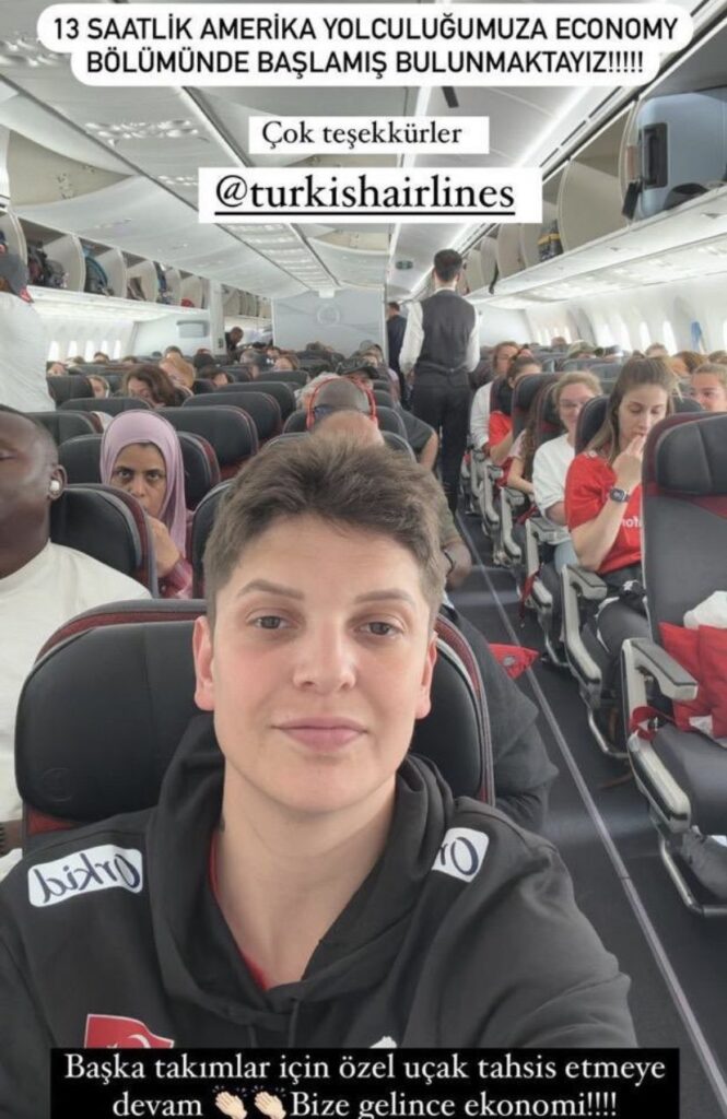 Kaptan Eda Erdem ekonomideki ABD uçuşlarına ironik bir mesajla tepki gösterdi. Geçen yaz katıldığı tüm turnuvalarda kürsünün en üst basamağında yer alıp Türkiye’yi gururlandıran, bu sene de 2024 Olimpiyat Oyunları’nda madalya hedefiyle mücadelelerini sürdüren Filenin Sultanları Milletler Ligi maçları için ABD’ye yola çıktı. Milli takım sponsoru Türk Hava Yolları’nın (THY) organize ettiği yolculukta milli sporcuların ekonomi sınıfında uçtuğu gözüktü. Voleybolcular sosyal medya hesaplarından duruma tepki gösterdi.