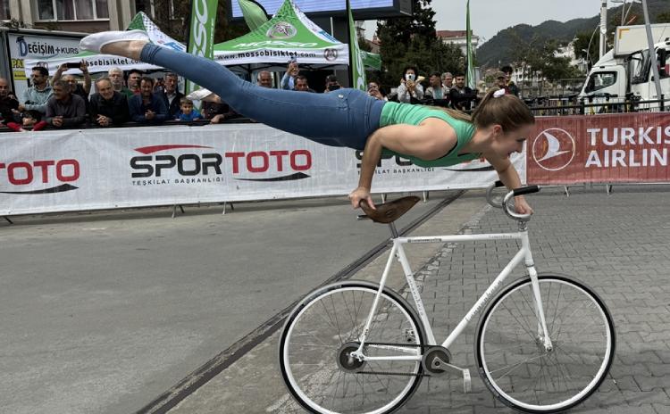 Artistik bisikletçi Viola Brand, Marmaris’teki finiş öncesinde gösteri yaptı.