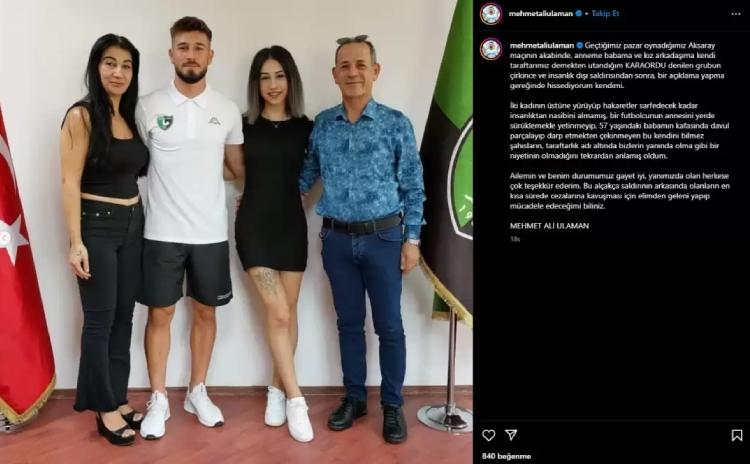 Sosyal medyada paylaşımda bulunan Denizlispor oyuncusu Mehmet Ali Ulaman saldırıya uğradığını açıkladı. Ulaman şunları söyledi: “Geçtiğimiz pazar oynadığımız Aksaray maçının akabinde, anneme babama ve kız arkadaşıma kendi taraftarımız demekten utandığım Karaordu denilen grubun çirkince ve insanlık dışı saldırısından sonra, bir açıklama yapma gereğinde hissediyorum. İki kadının üstüne yürüyüp hakaretler sarf edecek kadar insanlıktan nasibini almamış, bir futbolcunun annesini yerde sürüklemekle yetinmeyip, 57 yaşındaki babamın kafasında davul parçalayıp darp etmekten çekinmeyen, kendini bilmez şahısların, taraftarlık adı altında bizlerin yanında olma gibi bir niyetinin olmadığını tekrardan anlamış oldum. Benim ve ailemin durumu gayet iyi. Yanımızda olan herkese çok teşekkür ederim. Bu alçakça saldırının arkasında olanların en kısa sürede cezalarına kavuşması için elimden geleni yapıp mücadele edeceğimi biliniz.”
