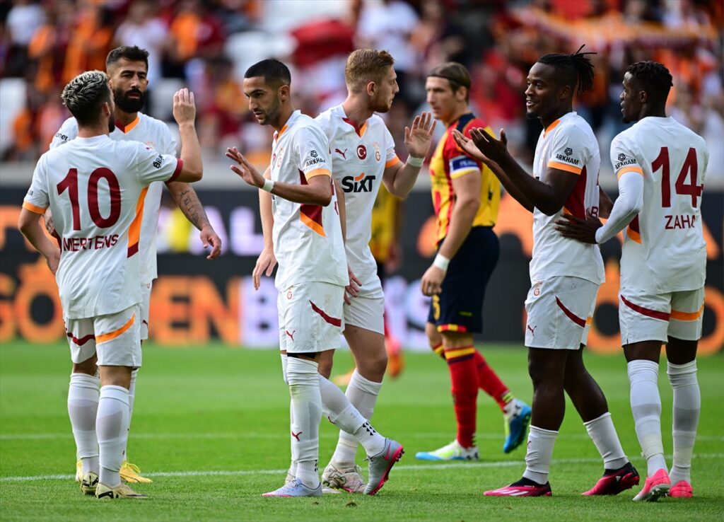 Karşılaşmaya hızlı başlayan taraf Galatasaray oldu ve henüz 10’uncu dakikada ön alan baskısıyla topu kapan Ziyech topla birlikte kat ederek ceza sahası içerisine girdi. Faslı oyuncunun şutunda meşin yuvarlak ağlarla buluştu ve sarı-kırmızılılar 1-0 öne geçti. Golden sonra da baskısını arttıran Galatasaray maçın 40’ıncı dakikasına girilirken farkı ikiye çıkardı. Hızlı hücumda soldan ceza sahası içerisine kadar giren Zaha’nın rakiplerini geçtikten sonraki şutunda top filelerle buluştu ve skor 2-0’a geldi. İlk yarı bu skorla sona erdi.