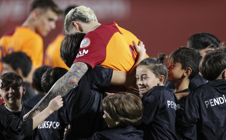 Galatasaray’ın Arjantinli yıldızı Mauro Icardi, karşılaşma öncesi seremoniye çıkan çocuklardan büyük ilgi gördü. Seremoniye futbolcuların ellerinden tutarak çıkan çocuklar, İstiklal Marşı’nın okunmasının ardından Icardi’nin etrafını sardı. Birçok statta benzer davranışla karşılaşan Icardi, kendisine sarılan çocuklara yakın ilgi gösterdi.