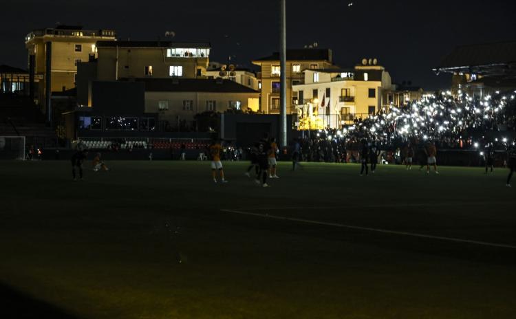 İlk yarıda elektriklerin kesilmesiyle stat bir anda karanlığa gömüldü.