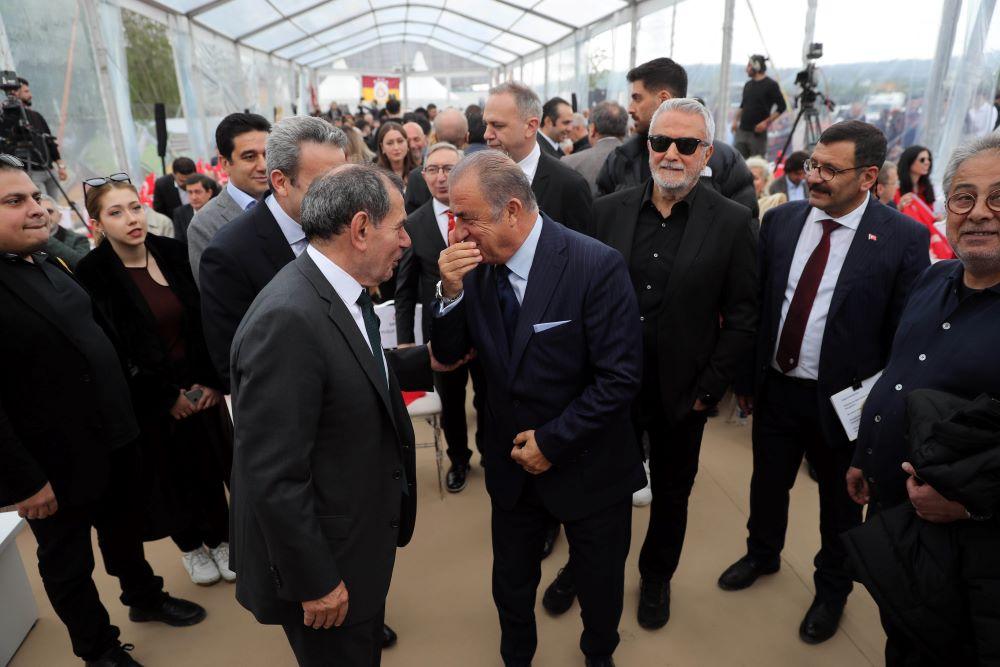 Süper Lig'de şampiyonluğa koşan Galatasaray'da başkan Dursun Özbek, eski başkanlar, Fatih Terim ve futbolcular Kemerburgaz'da Metin Oktay Tesisleri'nin temel atma töreninde bir araya geldi.