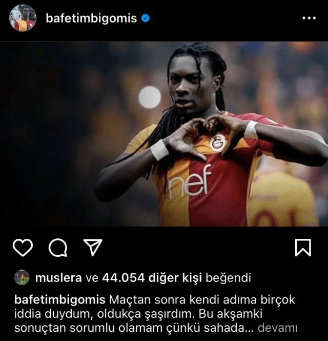 Galatasaray Teknik Direktörü Okan Buruk 3-3 biten Karagümrük maçından sonra Bafetimbi Gomis'in bu sezon forma giymek istemediğini söyledi. Başkan Dursun Özbek, "Bu kabul edilemez" dedi. Gomis, Okun Buruk'a sosyal medyadan yanıt verdi. Kaptan Muslera ve Zaniolo, Gomis'in paylaşımını beğendi.
