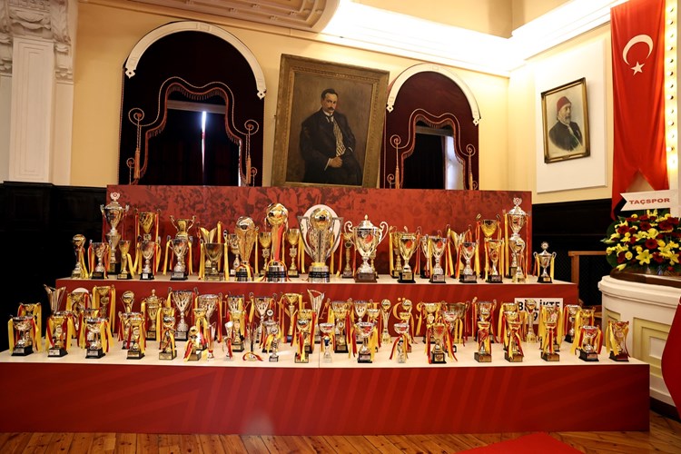 2023-2024 sezonunda tüm branşlarda kazanılan kupalar Tevfik Fikret Salonu’nda sergilendi.