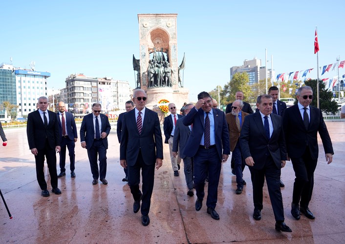 Sarı-kırmızılı heyet daha sonra Taksim Cumhuriyet Anıtı’na çelenk bıraktı ve İstiklal Caddesi üzerinden Galatasaray Lisesi’ne geçti.