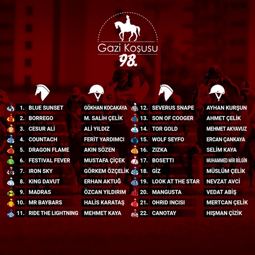 98. Gazi Koşusu’nda yarışacak safkanlar, sahipleri ve jokeyleri şöyle…