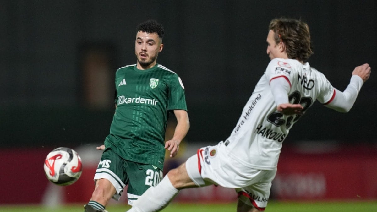 65.dakikada Aliağa Futbol atağında orta sahadan topu taşıyan Emre Keskin’in, rakiplerini çalımladıktan sonra ceza sahası önünden yaptığı vuruşta kaleci Erhan Erentürk, topu kornere çeldi.