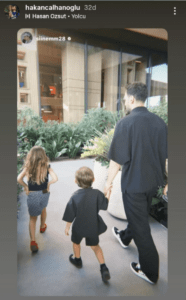 Milli yıldızın eşi Sinem Çalhanoğlu; Hakan ve iki çocuğunun yürüdüğü bir fotoğrafı Instagram üzerinden paylaştı.